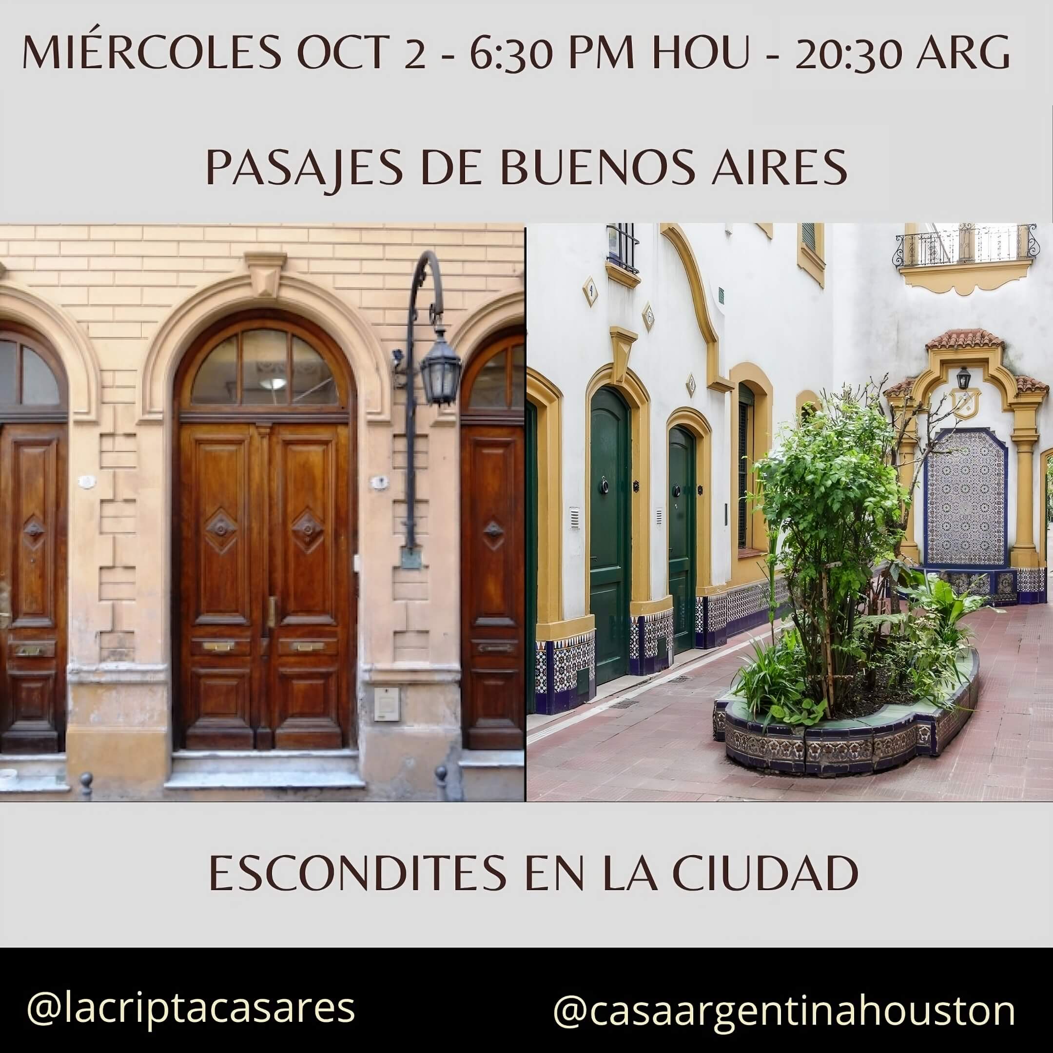 Casa Argentina de Houston en colaboración con el Consulado Argentino en Houston presenta Ciclo de Tertulias Virtuales de La Cripta de los Casares